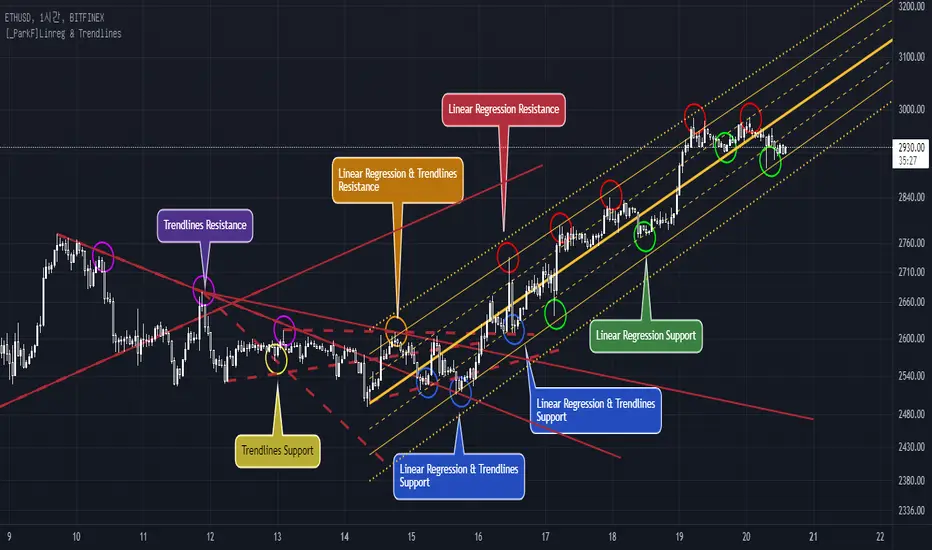 선형 회귀(채널) 및 추세선은 추세 식별을 용이하게 할 뿐만 아니라,