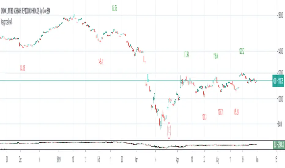 In this example, we can see the previous low of the ticker is around 105.5, the previous high is around 120.