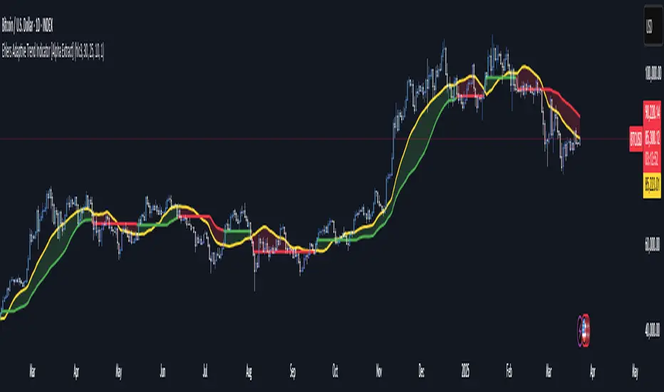 The Ehlers Adaptive Trend Indicator combines Ehlers' advanced digital signal processing techniques with dynamic volatility bands to identify robust trend conditions and potential reversals. This powerful tool helps traders visualize trend strength, adaptive support/resistance levels, and momentum shifts across various market conditions.