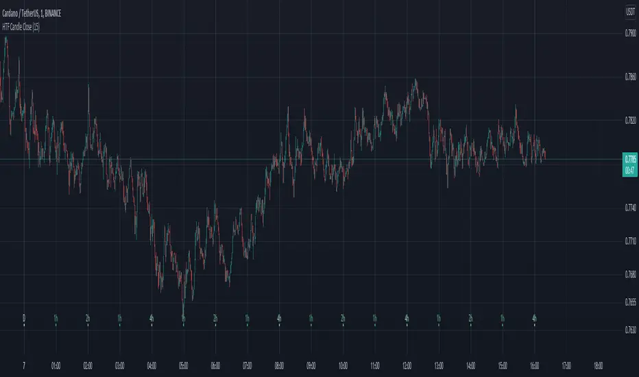 This draws a label to alert user when a higher timeframe candle closes on a intraday chart.