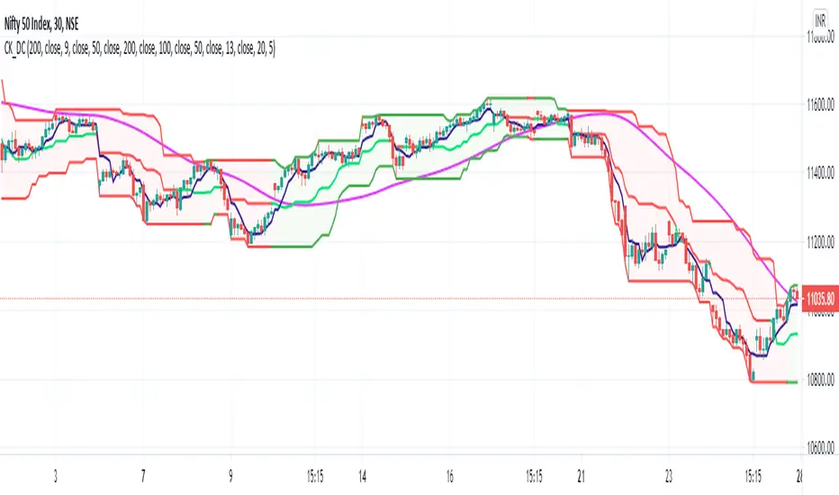 - If price is above 200 HMA, then the Donchian Channel is highlighted in Green color