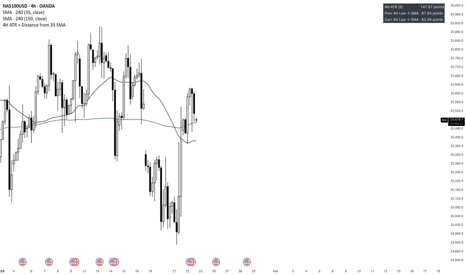 Distance of previous 4H candle high/low from 35SMA (4H)