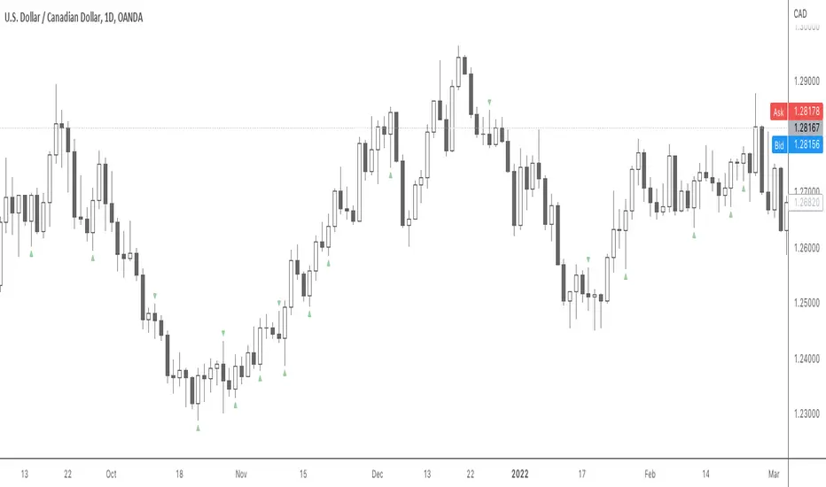 - bearish: close < open (triangle above)