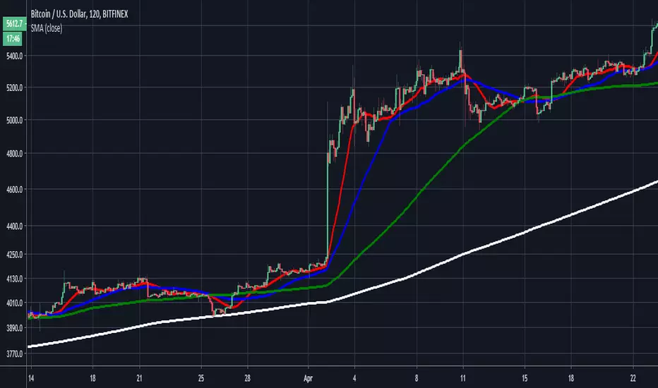 Simple Mobing Average (20, 50, 150, 500) for golden cross patterns.