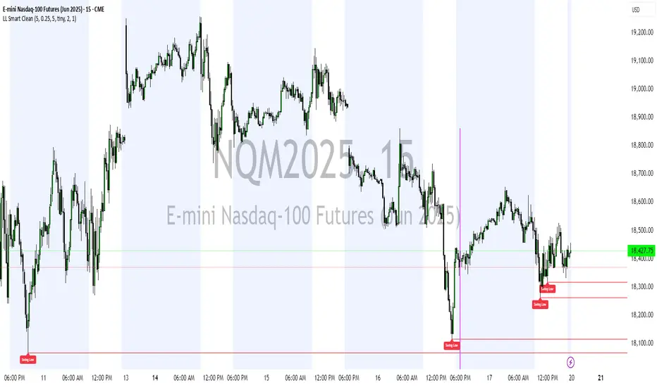 This script automatically identifies and plots liquidity-rich swing lows based on pivot logic, filters them to remove redundant levels, and overlays daily highs/lows for added context — giving Smart Money Concept (SMC) traders a clean, actionable map of liquidity.