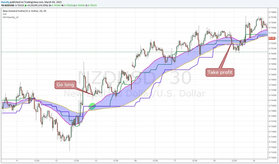 Made a new version of my trading system. I have added a cloud that is made with 45 EMA and 104 MA. Now you can choose where to set trailing stop. As shown in the example you set trailing stop under the cloud.