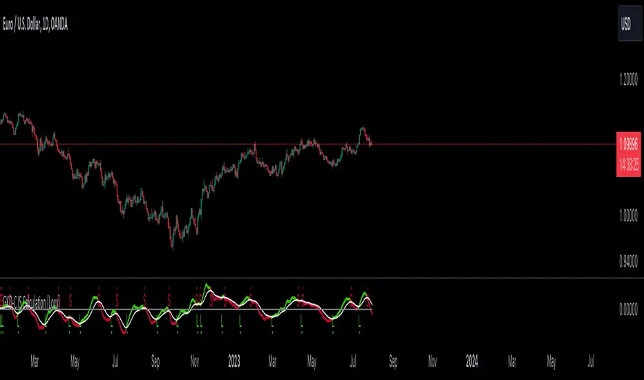 The IS Calculation involves a straightforward computation of two Exponential Moving Averages (EMAs). One of the EMAs is lagged. These EMAs are then averaged over a Chandelier Value, and the resulting output is represented on the chart as an oscillator. This indicator includes both signal and zero crosses. The default is signal crosses.