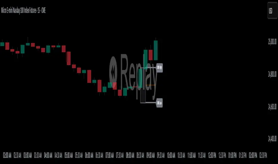 ORB High/Low Lines: Automatically plots the high and low of the opening range.