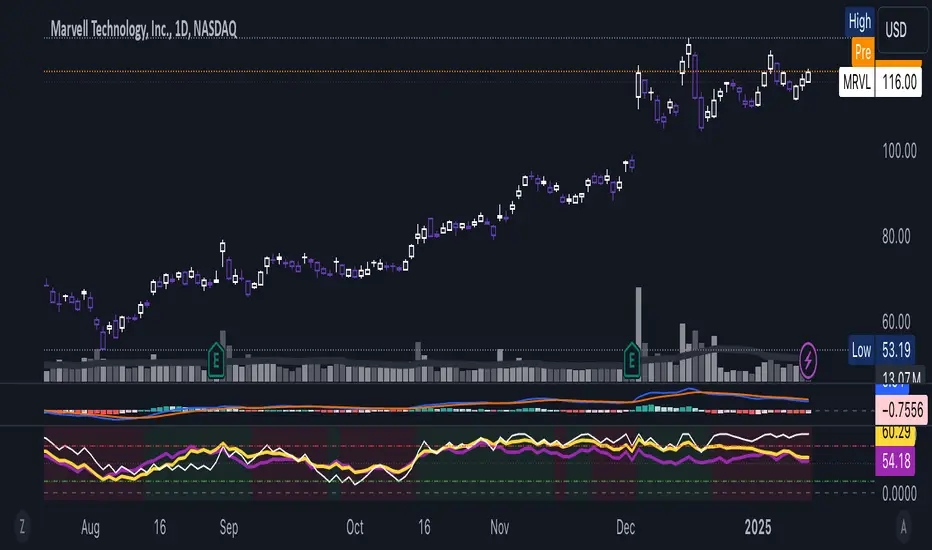 A dynamic volume-based technical indicator combining Volume-Weighted MACD, Money Flow Index (MFI), and normalized On Balance Volume (OBV). This composite indicator excels at identifying breakouts and strong trend movements through multiple volume confirmations, making it particularly effective for momentum and high-volatility trading environments.