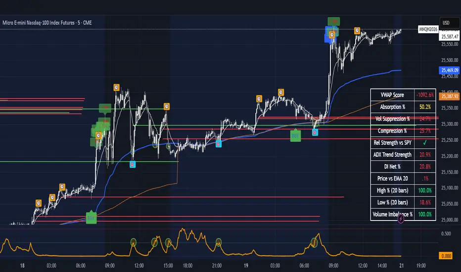This tool models that decay process by measuring how much effort the market is spending versus how much result it’s achieving, and whether internal components remain aligned.