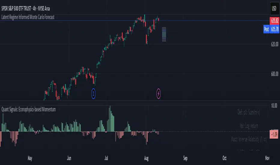 This indicator implements a “physical momentum” concept from quantitative finance research, where momentum is defined similarly to physics: