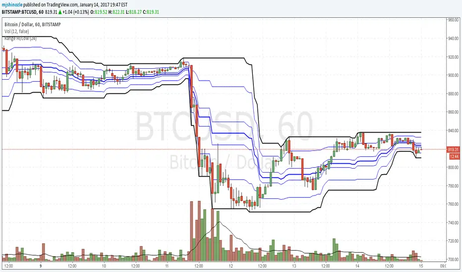 Slight development on previous simple range hi/low script. Plots the highest and lowest of x periods, plus the mid point and 2 sets of fibs. That's it. :)