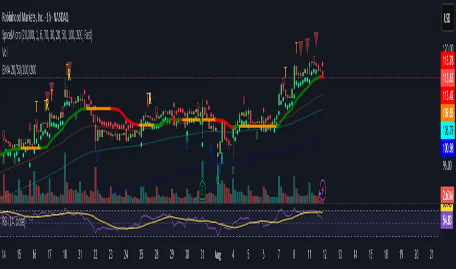 Prebuilt alerts for: RSI Up/Down, T/B triggers, T/B confirmations, 3-Line Strike bull/bear, Leledc highs/lows, EMA crosses (20/50/100/200), the special 11/34 trend change, Micro Dots, and VMA price cross. (Alert messages are const strings so they compile cleanly.)