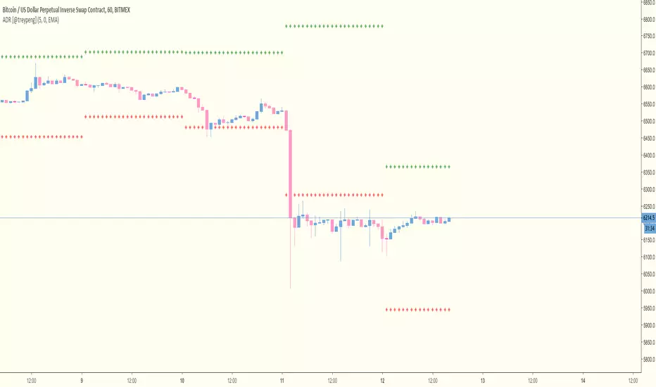 Average Daily Range provides an upper and lower level around the daily open. It is calculated by taking an EMA/SMA average of a given number of previous days' True Range.