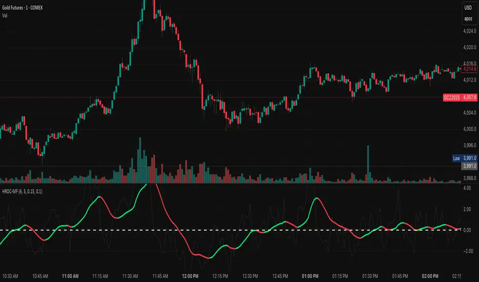 Main ROC Line: Adaptive EMA of ROC, color-coded by trend regime.