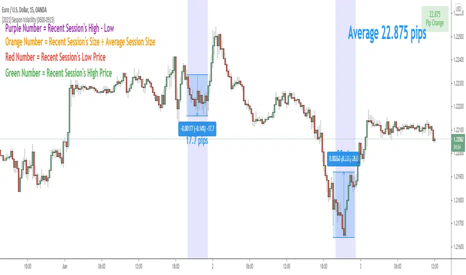 Purple Number: The recent session's price range (high - low).