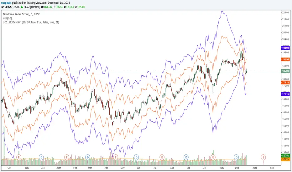 This Plots the Standard Deviation Price Band based on the Historical Volatility. SD 1, 2, 3.