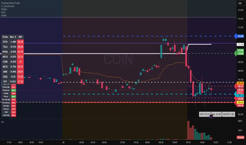 This indicator calculates the daily ATR of the past 14 days. The ATR% indicates the range completed for the day. The ATR indicates the average daily range. The 20% ATR indicates the value of 20% of the daily ATR for retracement purposes.