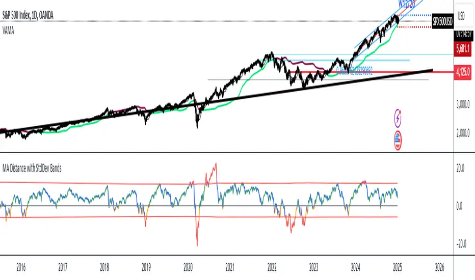 This Pine Script indicator calculates and visualizes the percentage deviation from a moving average with dynamic standard deviation bands. Here's what it does: