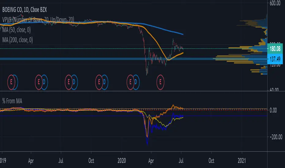 To chart price relative to 50 and 200 day SMAs and to use the difference between those metrics as an indicator of bull or bear market and potential turnarounds.