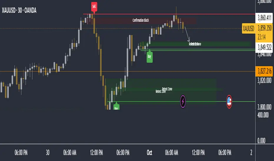 Smart Retest Zones – Automatically highlights areas where retests are most likely to occur for profit booking or position scaling.