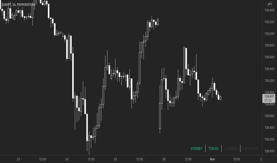 A simple market session indicator that show you what market is in session according to the timezone you configured. It will draw a table with 4 cells matching 4 market Sydney, Tokyo, London and New York. Whenever market is in session the matching text will change colour.