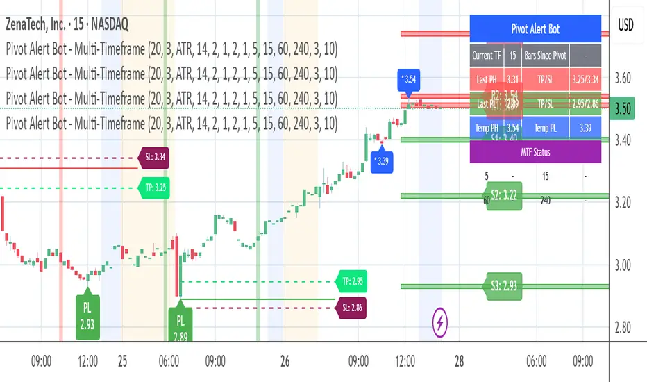 Pivot Alert Bot automatically detects and labels pivot highs and pivot lows as they confirm across multiple timeframes. Designed for active traders who want clean, actionable signals without chart clutter.