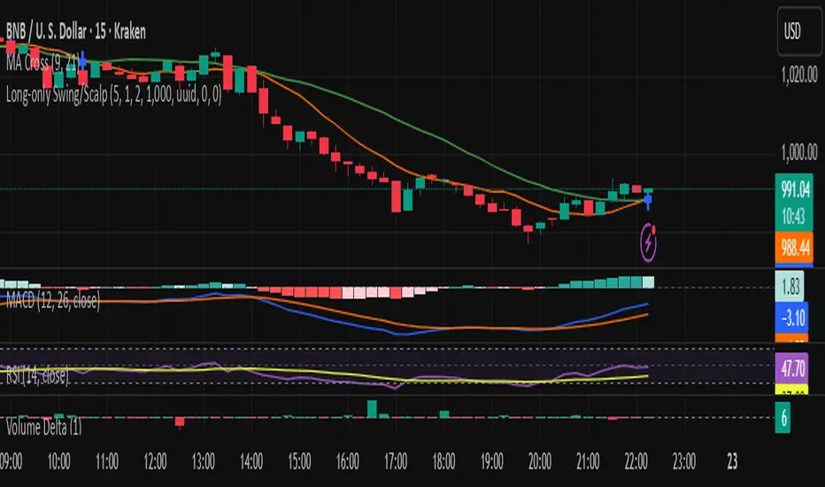 This is a basic scalper stategy for algos or crypto bots, tested on BNB, not the best backtest but you can tweak and get better results. Take profit at 1% and Sl at 2% , adjust those settings first to see different back test resutls.