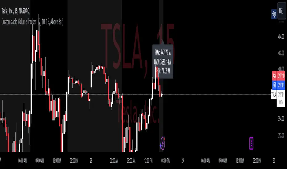 This custom TradingView indicator tracks and displays volume data across three key market sessions: Pre-Market, Open Market, and After-Hours. It is designed to give traders insights into the volume activity during these distinct trading periods, helping them make more informed decisions.