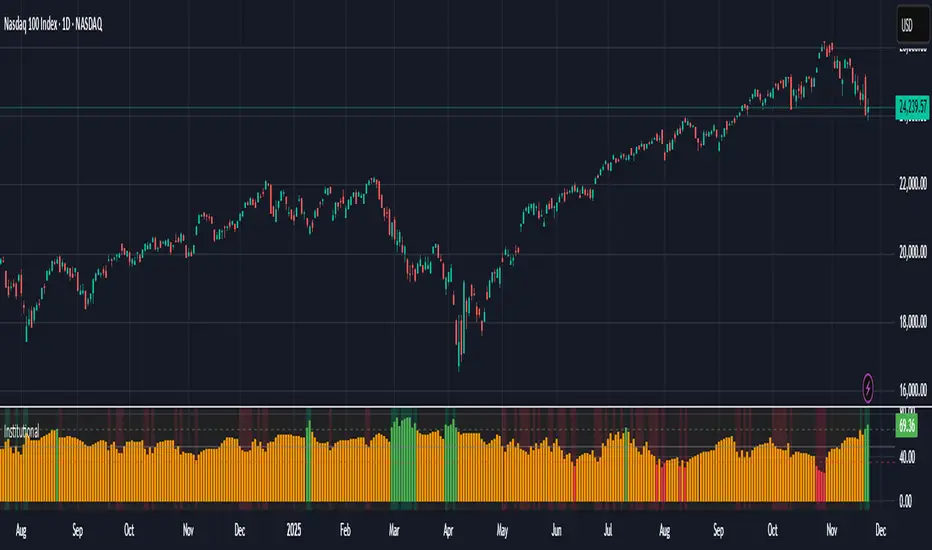 The label on the price scale shows the current Institutional Buying Percentage - it's a real-time reading of the indicator value.