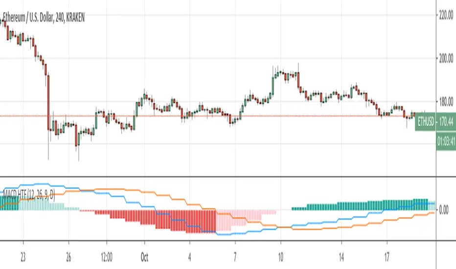 Just a simple MACD indicator calculated on Higher Timeframe.
