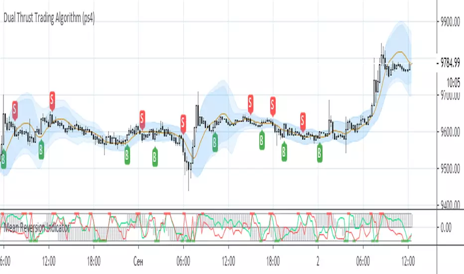 This is an PS4 update to the popular Dual Thrust trading algorithm posted by me some time ago (tradingview.com/script/xh37Gqcw-dual-thrust-trading-algorithm/). It has been commonly used in futures, Forex and equity markets. The idea of Dual Thrust is similar to a typical breakout system, however dual thrust uses the historical price to construct update the look back period - theoretically making it more stable in any given period.