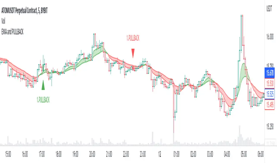 Bu indikatördeki basit fikir, 2 farklı EMA cross yaptıktan sonra gerçekleşen ilk pullbackleri dikkate alır. Bu size, oluşan bir trende en uygun seviyeden giriş imkanı verebilir. Tercih olarak , gerçekleşen tüm pullbackleri de seçebilirsiniz. Sadece eğitim ve test amaçlıdır.