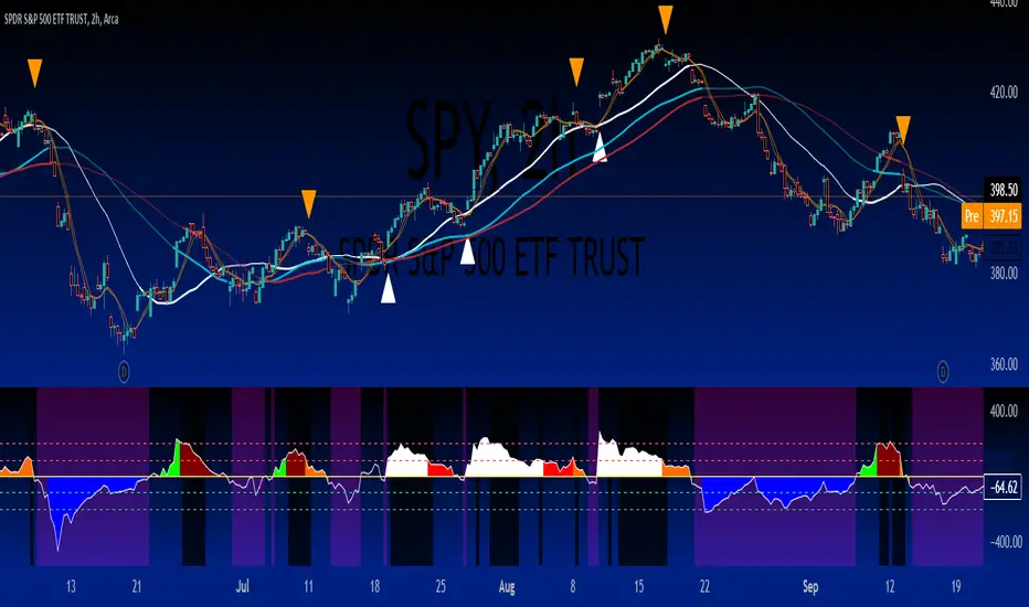 This indicator signals long and short opportunities. High Probability long and short trades, bullish and bearish divergence building, market time traps and bullish / bearish continuation as well as exhaustion of these moves.
