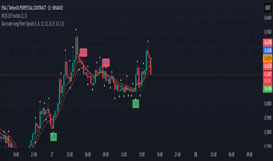 Signals SHORT when EMA5 crosses below EMA8 and the MACD line is below the signal line.