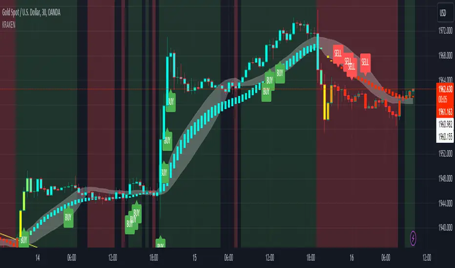 The Kraken AI scripts are proprietary algorithms, complex logic, and mathematical equations to analyze price movements and identify potential trading opportunities. These algorithms construct clouds and volume bars around a central price line, visually representing price volatility and possible support and resistance levels.