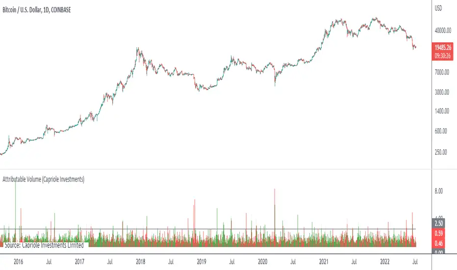 A volume indicator which calculates "Attributable Volume”, the portion of volume which contributed to the direction in which the candle moved.
