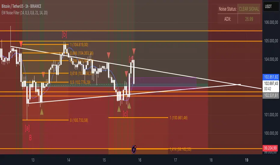 The Elliott Wave Noise Filter is a specialized indicator for TradingView, designed to solve one of the biggest challenges in Elliott Wave analysis on lower timeframes: the identification of market noise. By combining multiple advanced filtering techniques, this indicator helps distinguish meaningful price action from random fluctuations.