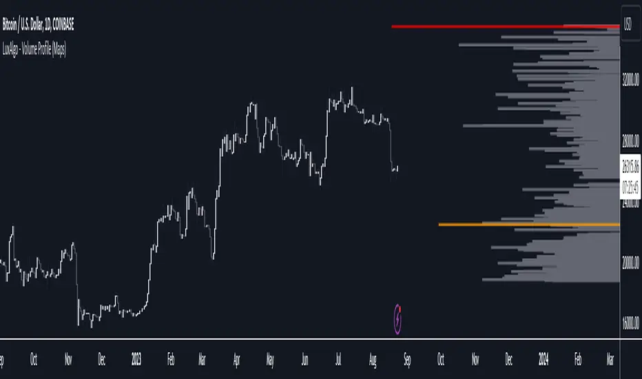The proposed script can highlight more frequent closing prices/prices with the highest volume, potentially highlighting more liquid areas. The prices with the highest associated volume (in red and orange in the indicator) can eventually be used as support/resistance levels.