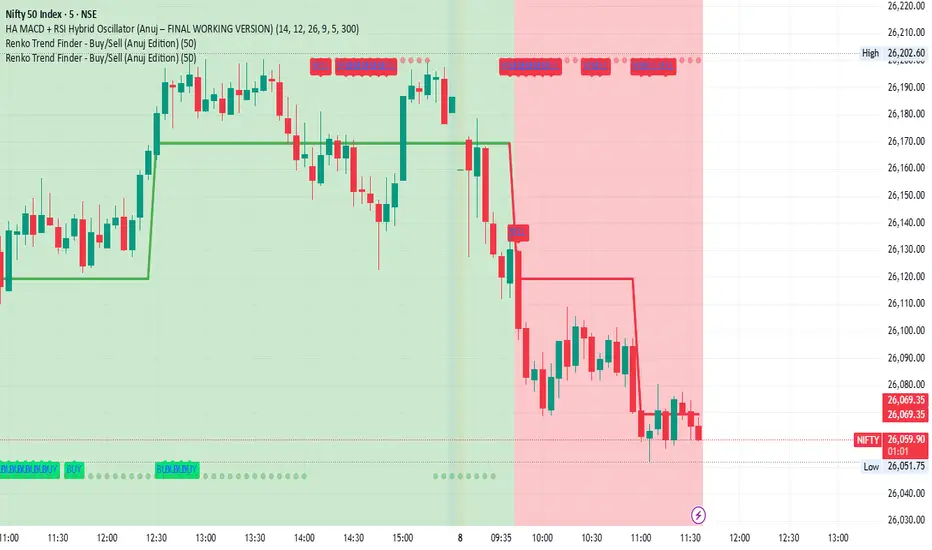 Renko Trend Finder – Anuj Edition is a powerful trend-following tool designed to detect market direction using Renko logic instead of traditional candlesticks.