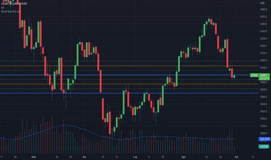 Round Numbers are very important psychological levels in trading but also quarters levels (25 and 75) have a huge importance, so I created this script that shows all these levels with different colors and different lines style.