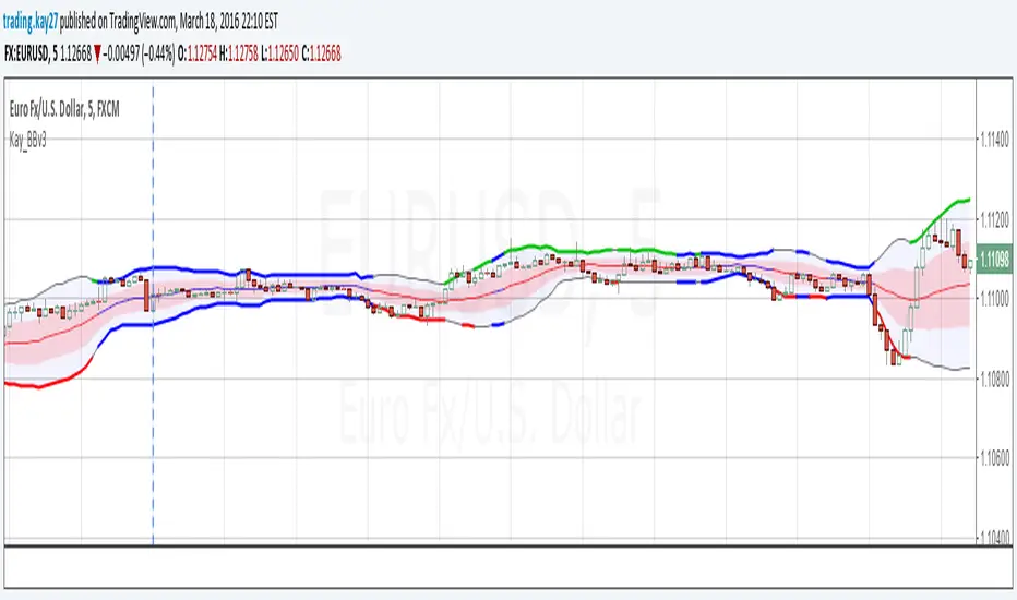 Use it with another band with setting 20, 0.6 deviation. Prices keeping above or below the 2nd bands upper or lower bounds shows trending conditions.