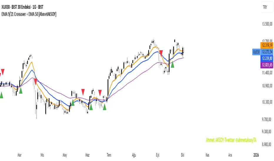 EMA 9/21 Crossover + EMA 50 [AhmetAKSOY]