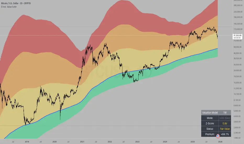 The Institutional Valuation Suite addresses this latency by utilizing Geometric (Log-Normal) Standard Deviation. This methodology enables the model to adapt dynamically to the asset's price scale, providing statistically significant valuation zones regardless of price magnitude.