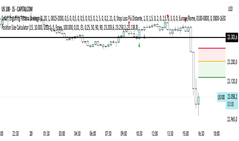 The Position Size Calculator is a TradingView indicator designed to help traders calculate the optimal position size for their trades based on account size and risk tolerance. This tool visually represents entry, stop loss, and take profit levels while automatically calculating the appropriate position size to maintain consistent risk management.