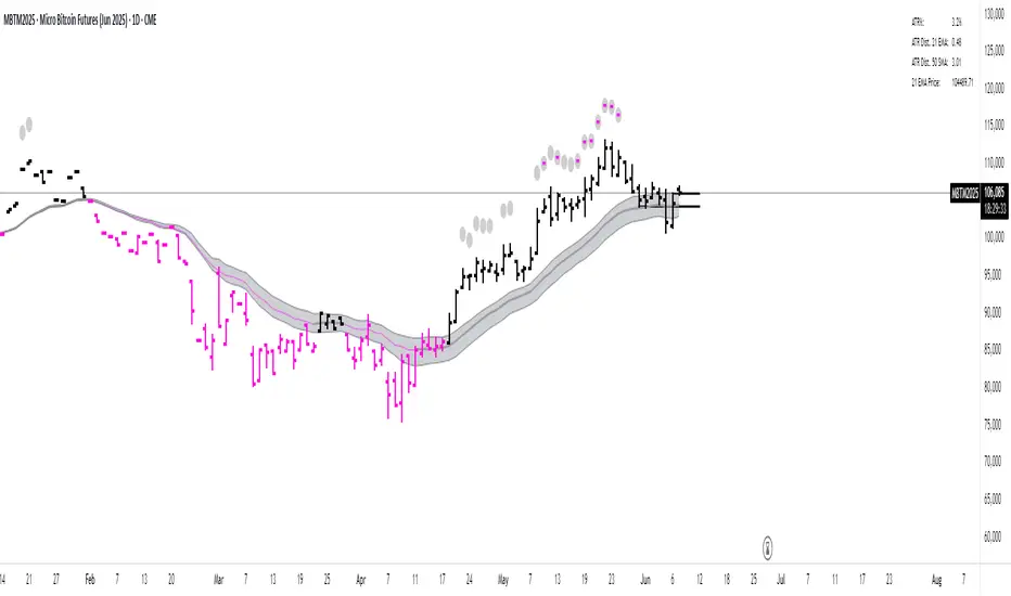- Dynamic Cloud: Gray fill between high and low EMAs for visual structure reference