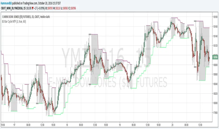 Get used to editing the inputs to suit your liking. Often 3-5 length and always looking at different resolutions to get a big picture story. You could put multiple instances of the study up to see them simultaneously. I based the idea off of Krausz's 3 day cycle which you can read about in his teachings. I tend to find it looking better using Heikin Ashi bar-style.
