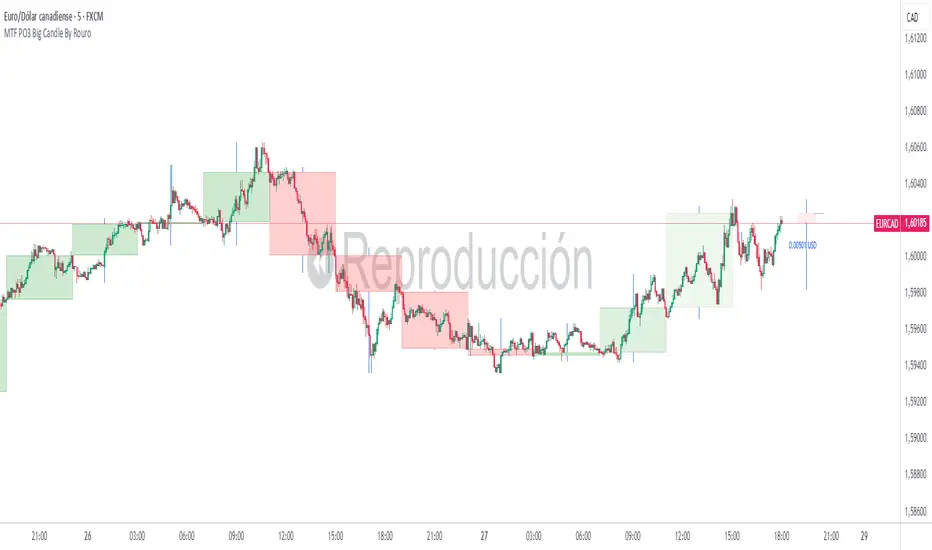 ๐ MTF PO3 Big Candle By RouroThis indicator allows you to visualize candles from higher timeframes (HTF) directly on lower timeframe charts.