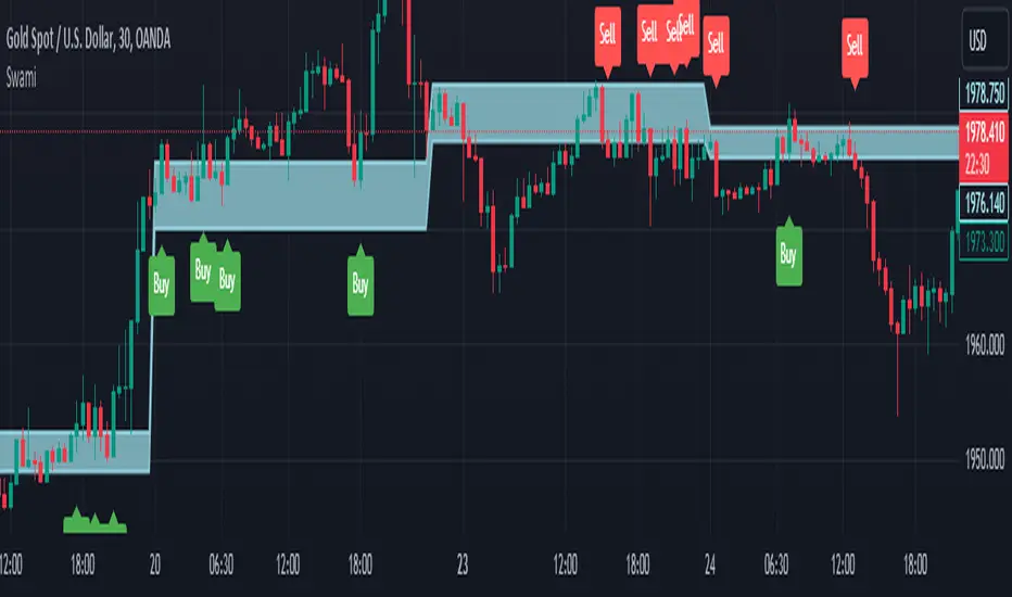 Swami presents itself as a Range Breakout Signals, an innovative indicator that identifies trending or ranging intrabar candles. It generates signals when the price breaks the extremities of these ranging intrabar candles.