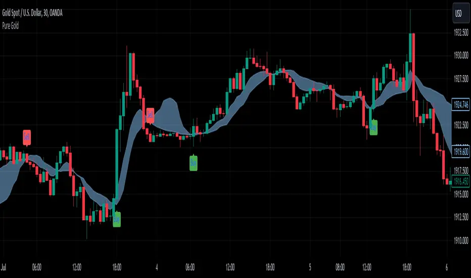 Pure Gold operates by automatically generating signals for buying and selling.